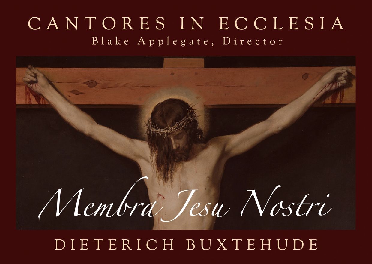 Cantores in Ecclesia presents Membra Jesu Nostri ("Limbs of Our Jesus"), the profound, devotional masterpiece by German Baroque composer Dieterich Buxtehude (1637–1707). Consisting of seven short cantatas, each offers a meditation on a different part of Christ’s crucified body—first His feet, followed by His knees, hands, side, breast, heart, and finally, His face.